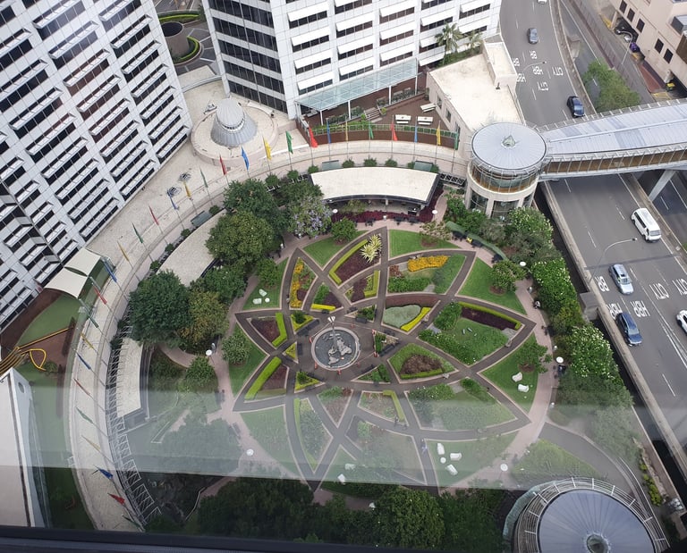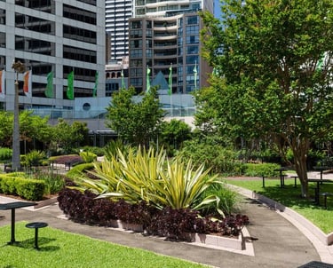 This site visit wouldn't be complete without highlighting the Crescent Garden—the defining landmark of the Darling Park Precinct.