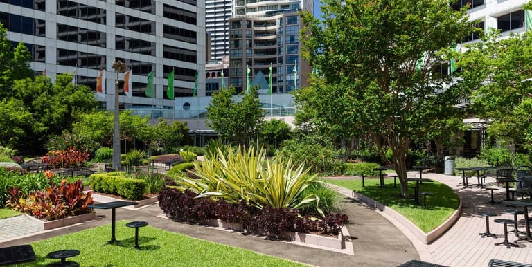 The garden also serves as a natural wayfinding hub, linking the three commercial buildings within the precinct and ensuring smooth navigation across the site. The iconic water fountain and thoughtful landscape design act as intuitive guides, enhancing the overall user experience.